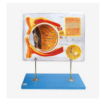 GD/A17106眼示教放大模型產品介紹:眼示教放大模型置于透明有機玻璃盒內, 為眼球正中切口后的半側眼球, 可觀察眼球正中矢狀切面和半側眼球的外部結構。模型可顯示眼球的解剖(包括眼球壁和內容物)、眼...